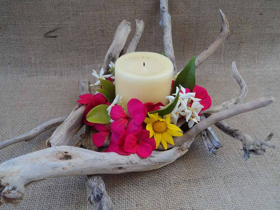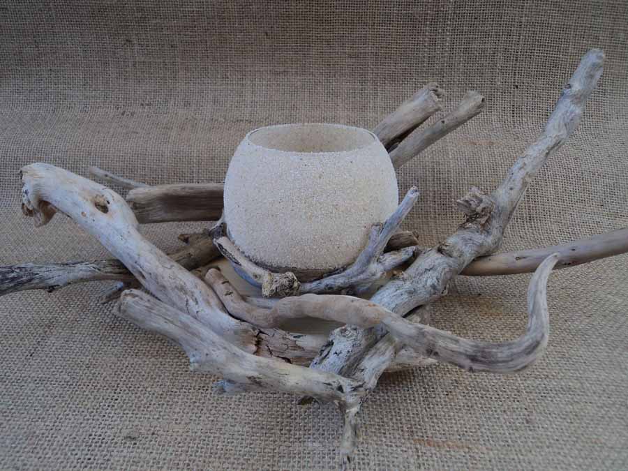 βάση από θαλασσόξυλα, με υποδοχή γυάλας ή κερί