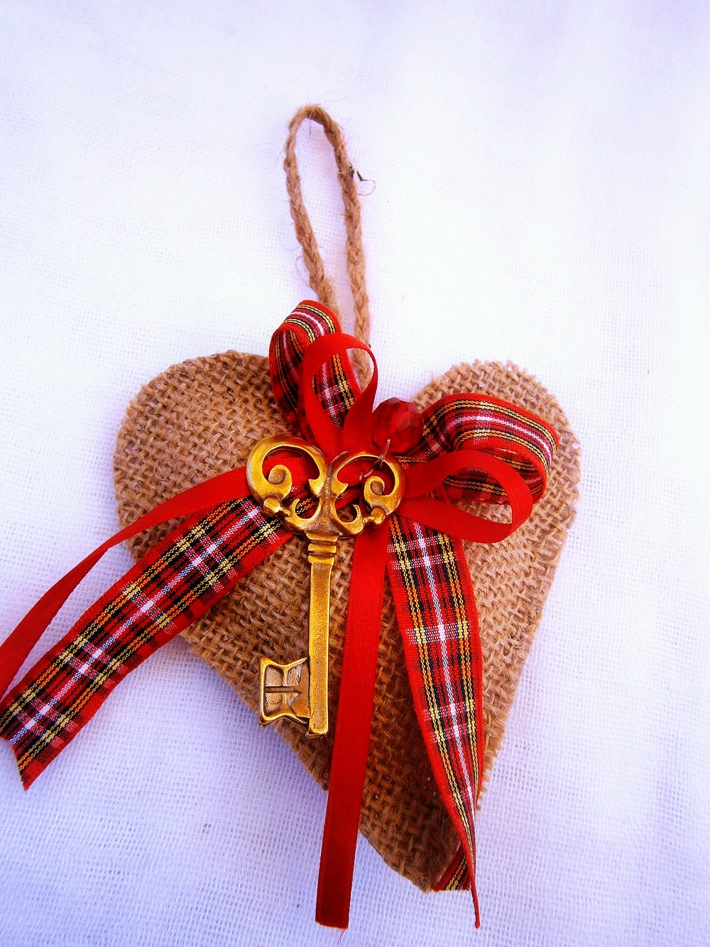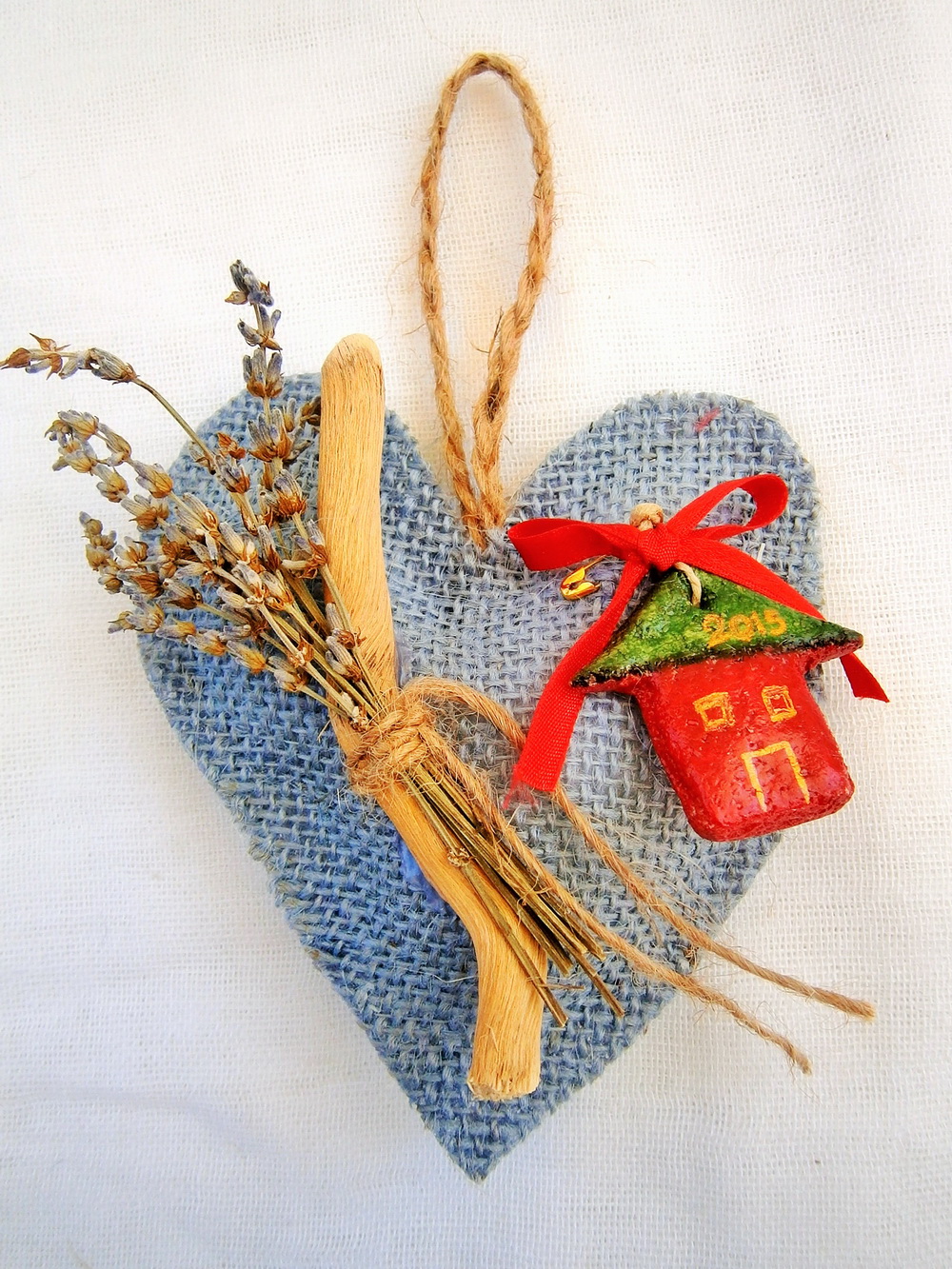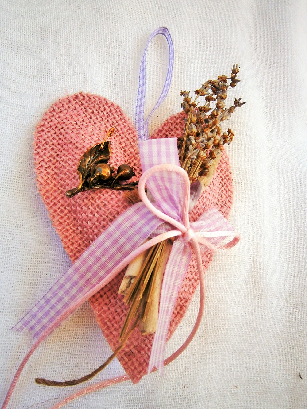 Γούρια καρδιές λινάτσα σε διάφορα χρώματα, διακοσμητικά πηλός, μέταλλο, λεβάντα, ημιπολύτιμες πέτρες,