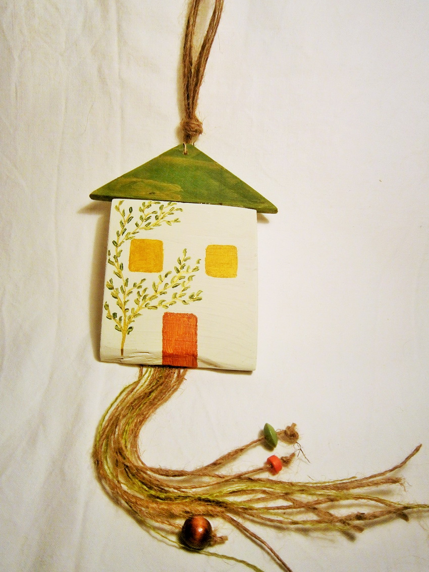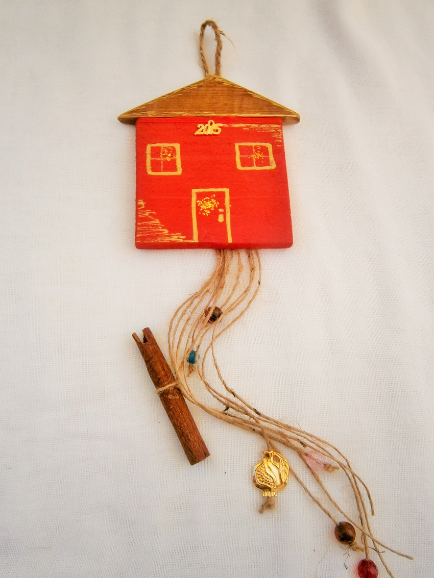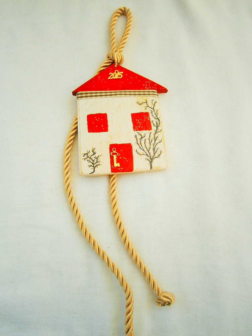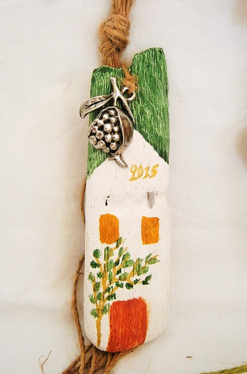 γούρια, χειροποίητα ξύλινα σπιτάκια, 10Χ12