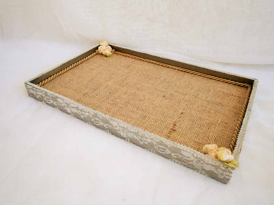 Δίσκος διακοσμημένος δαντέλα και λινάτσα