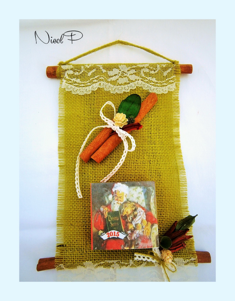 ημερολόγιο, πράσινη λινάτσα δαντέλες αποξηραμένα, 25Χ15