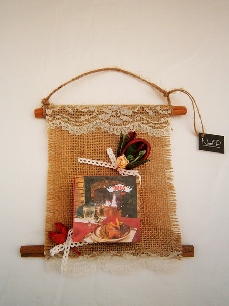 Ημερολόγιο, λινάτσα πάπυρος δαντέλες και αποξηραμένα..19Χ20