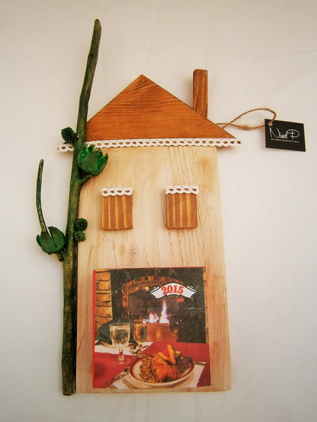 Ημερολόγιο, χειροποίητο ξύλινο σπιτάκι 25Χ15, δαντέλες, αποξηραμένα..