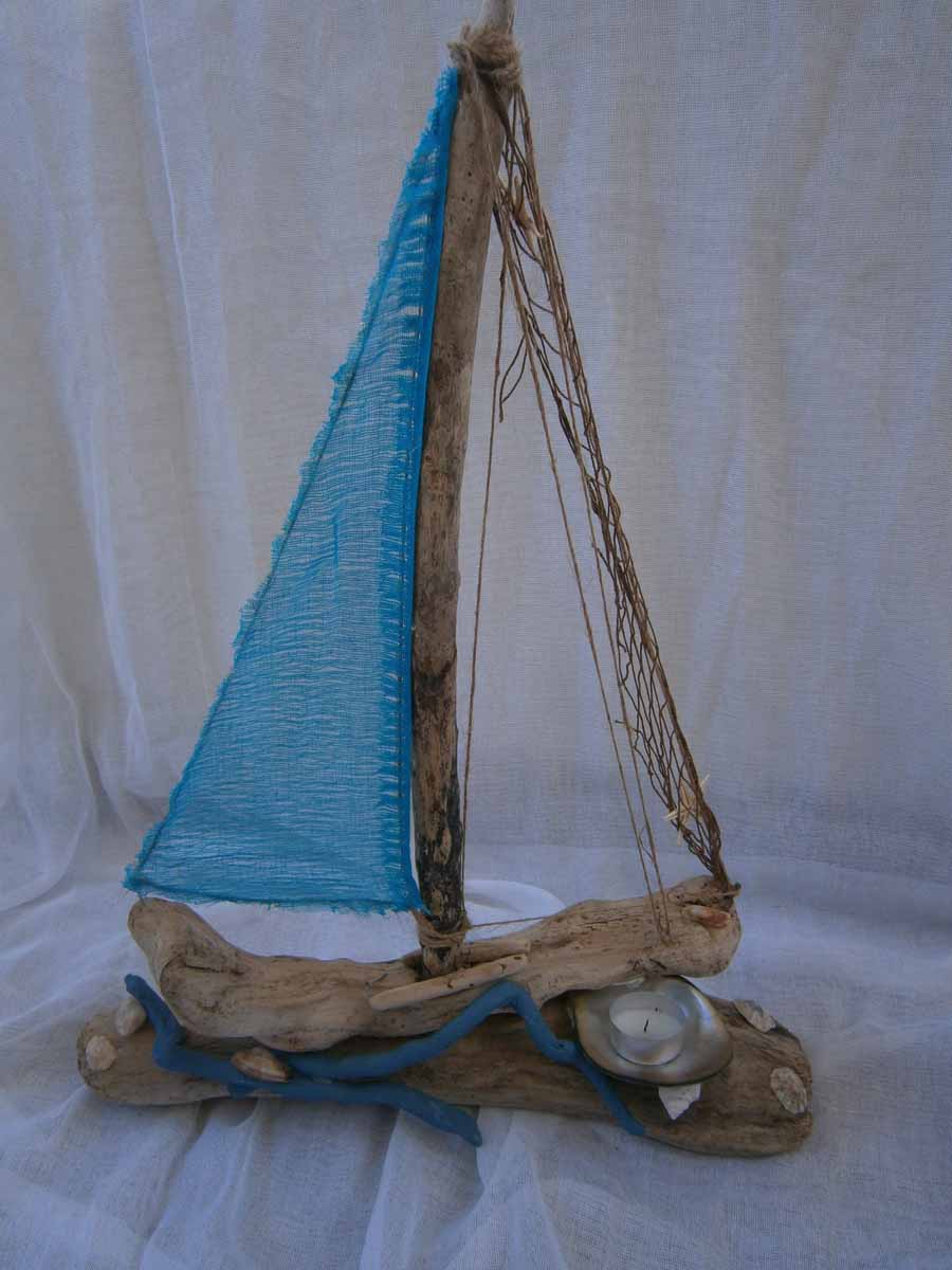 Καραβάκι driftwood πάνω σε βάση driftwood με ειδική θέση απο όστρακο για ρεσο