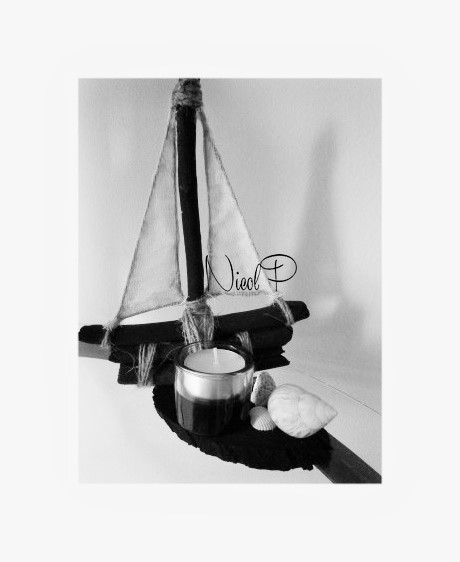 Καραβάκι κηροπήγιο  driftwood μαύρο πάνω σε βάση με ειδική θέση για ρεσό, 21 Χ 15