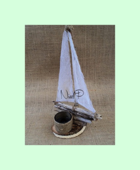 Καραβάκι από θαλασσόξυλα πάνω σε ξύλινη βάση με θήκη για ρεσώ, 28Χ14