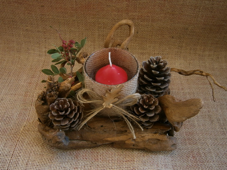 Κηροπήγιο επεξεργασμένο driftwood με λεπτομέρειες βελανίδια και κουκουνάρια, 12X6