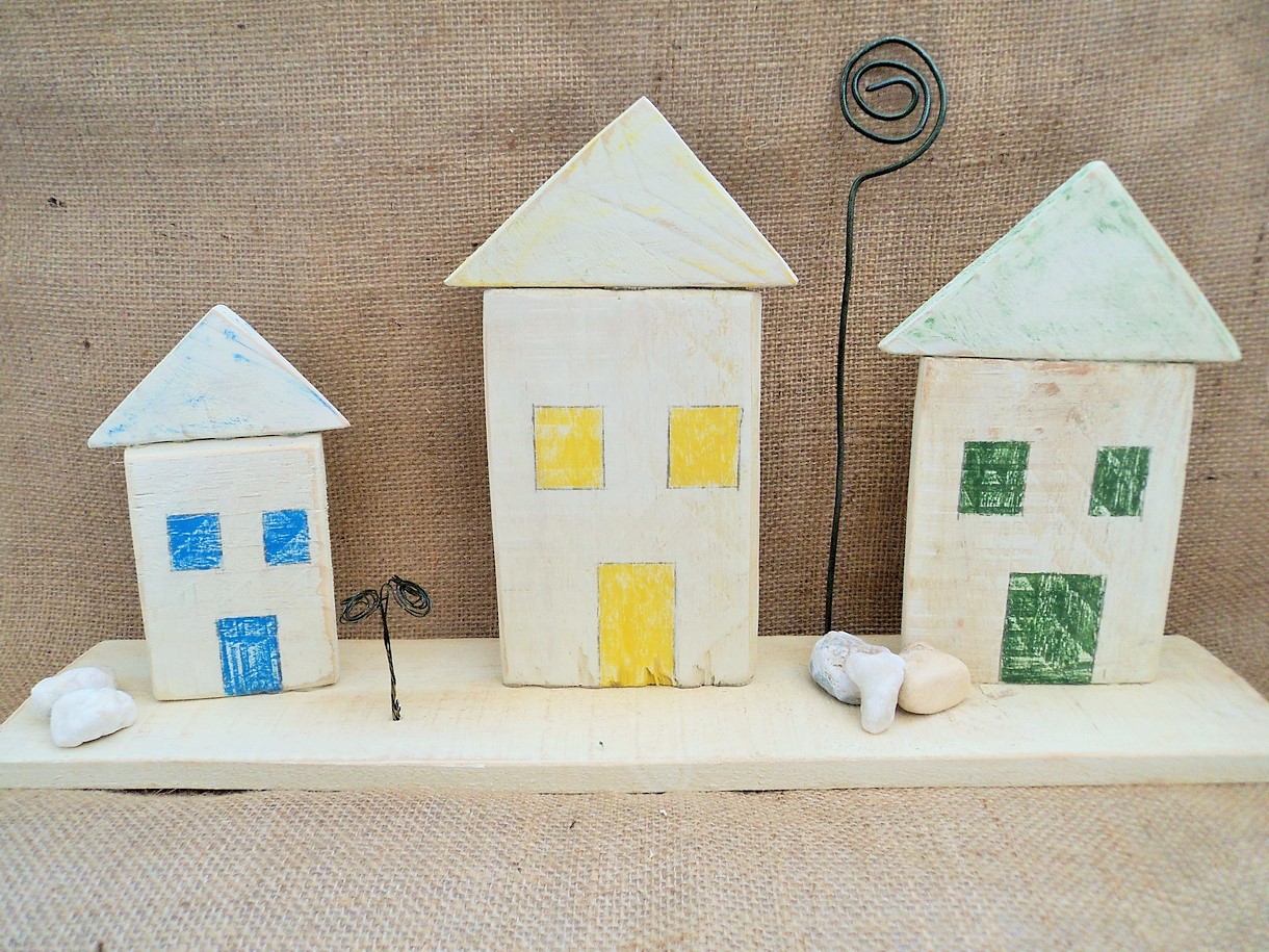 Ξύλινα επιτραπέζια σπιτάκια, διακοσμητικό κυρίως για παιδικό δωμάτιο, 25Χ12