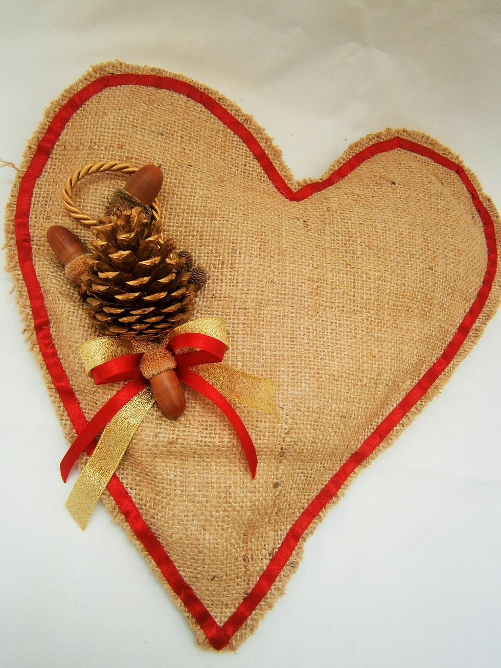χριστουγεννιάτικη καρδιά από λινάτσα, 35Χ28