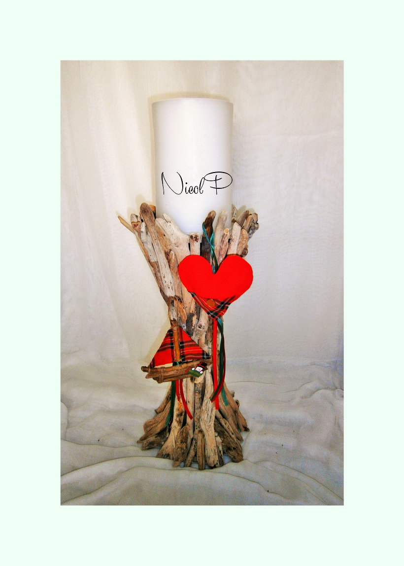 στήλη από θαλασσόξυλα με χριστουγεννιάτικη διακόσμηση και λευκό κερί κύλινδρο, ύψ.στ. 40