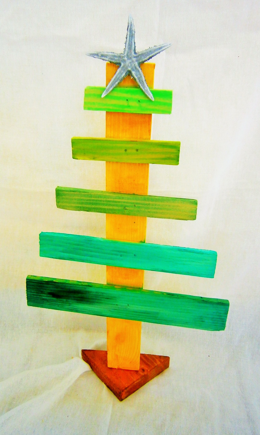 χριστουγεννιάτικο δεντράκι από χρωματισμένες τάβλες, αστέρι από ασημένιο αστερία, 44Χ28
