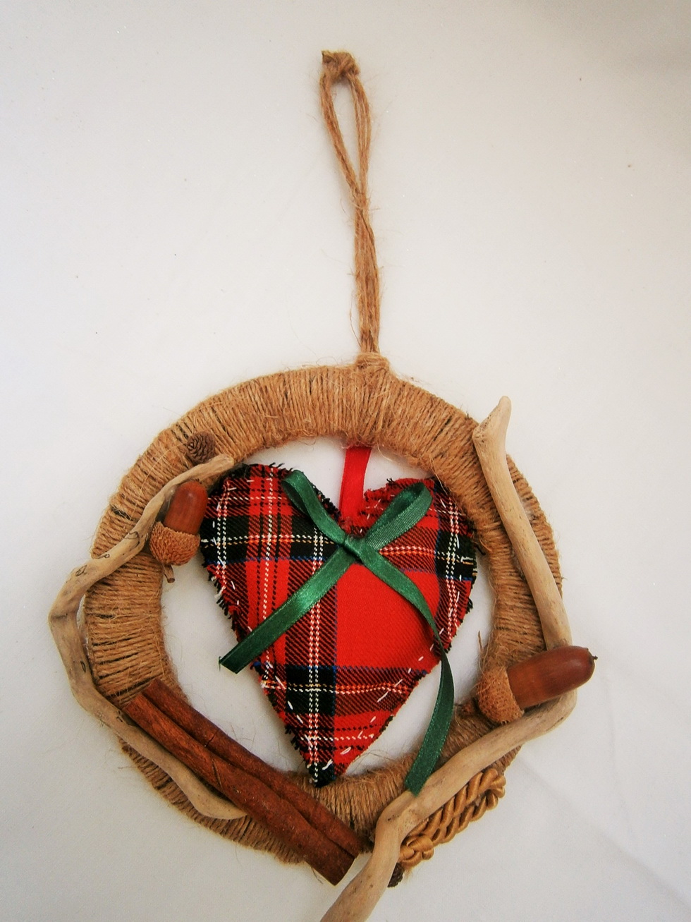 χριστουγεννιάτικο στεφάνι με καρώ καρδιά, 15Χ15