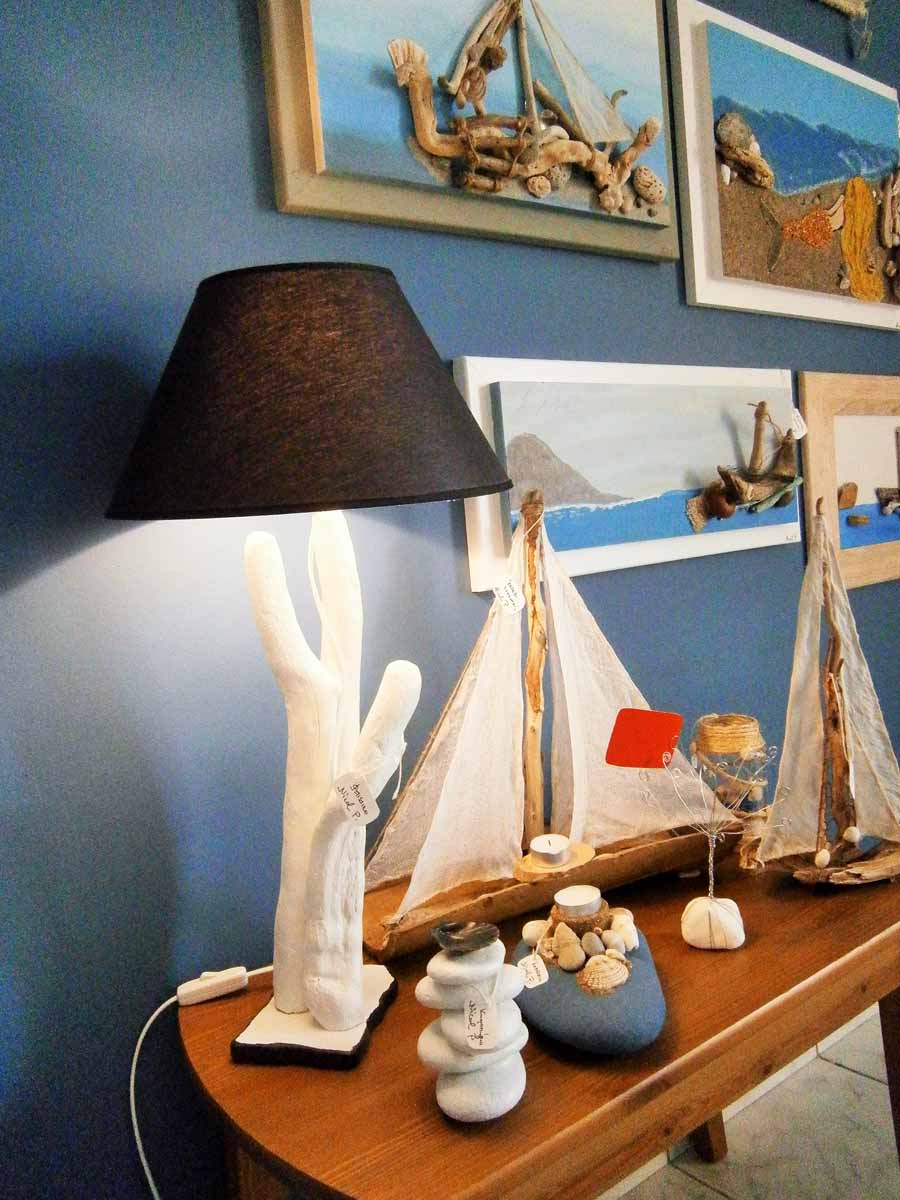 Ασπρόμαυρο φωτιστικό, θαλασσόξυλα, ύψος 55