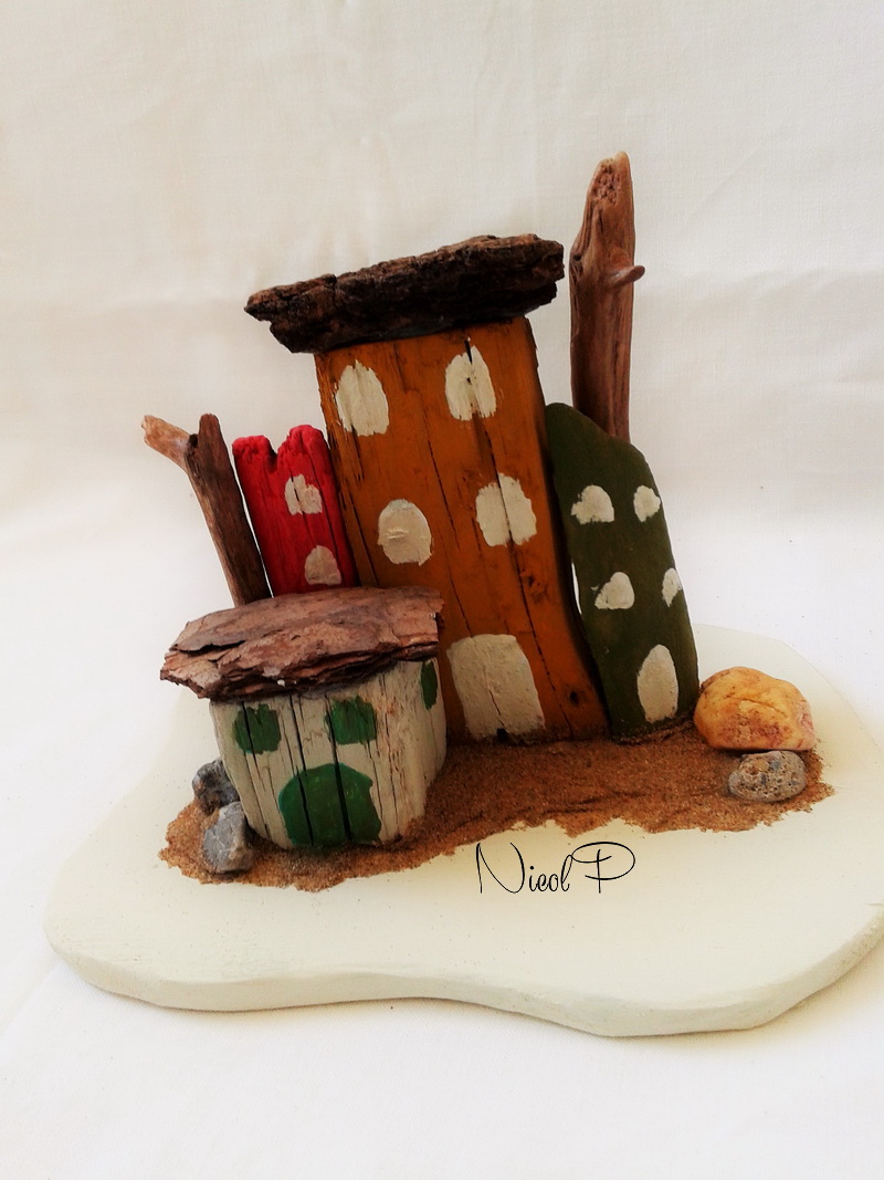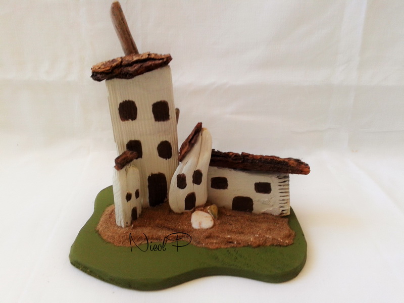 Σπιτάκια ξύλινα πάνω σε βάση, τρισδιάστατα, διάφορα χρώματα